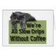 Un chat paresseux drapé sur les mots Nous sommes tous des gouttes lentes sans café.
