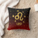 Aangepaste gooi kussen voor "Leo" met gouden sterrenbeeld symbool, gouden sterren en rode en zwarte gradiënt achtergrond.
