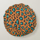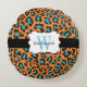 Coussin rond d'empreinte de léopard de grands chats d'animal chic, moderne, assez sauvage dans le bleu orange, noir, et lumineux d'aqua avec une rayure noire, blanc bordé avec la bannière noire que vous pouvez personnaliser avec une initiale de nom et de monogramme !