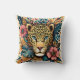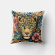 Een prachtig Sierkussen toont een ingewikkeld ontworpen luipaardgezicht omringd door kleurrijk gebladerte en bloemen, waardoor een levendig en artistiek middelpunt ontstaat voor elk slaapkamerdecor.