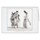 Twee "Mérveilleuses", vergezeld van een "onkroyable", nemen een wandeling op een straat in Parijs. Ze draag de overdreven petten en kapsels van de periode. Aan het einde van de Franse Revolutie trok een golf van opluchting en mode duizeligheid Parijs. Jonge mannen die bekend staan als "Incroyables" en hun tegenhangers van het vrouw "Les Mérveilleuses" waren blij met de overdreven visie die in strijd was met de toenmalige sociale conventies. Deze kaart is in ons eigen collectie uit het origineel overgenomen.