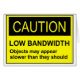 Dit gele lage bandbreedtewaarschuwingsteken waarschuwt dat de "voorwerpen langzamer kunnen lijken dan zij zouden moeten." Dat is het effect van het niet hebben van genoeg lijn of netwerksnelheid. Alles op het computerscherm neemt tot laag om op te lossen. Dan, opnieuw, kunnen sommige van uw medewerkers ook van de lage bandbreedteverscheidenheid zijn en schijnen ook in langzame motie te zijn.