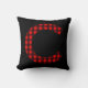 De letter C als een rode en zwarte buffelplein monogram kussen.
