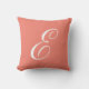 coussin monogramme personnalisé avec une lettre d'écriture classique E sur un arrière - plan corallien. Fabriqué aux États-Unis à partir de coton ou de polyester lavables à la machine. Parfait pour Elizabeth, Emily, Emma, Erica, Erika, Erin, Eva, Ellen, Esther, Elena, Evelyn ou toute autre personne qui s'appelle commence par la lettre E.