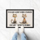 Let op! Kat Escape Artists in dienst. Heb je ooit het gevoel dat je huis een draaideur is voor avontuurlijke katachtigen? Deze twee onheilsmakers zijn altijd op zoek naar een ontsnappingsroute en een open deur is hun gouden ticket! Deze hilarische deurmat met onze feline escape-artiesten houdt je huis veilig en je escape-artiesten ingeperkt, terwijl je je gasten een flinke grinnik geeft. "Sluit alsjeblieft de deur - ontsnap artiesten in dienst!" Perfect voor kattenliefhebbers: een leuke en functionele manier om je liefde voor katten te shows en ze veilig binnen te houden. Stop kat jailbreaks voordat ze beginnen! Bestel vandaag nog uw deurmat "Please Close Door" en houd uw harige vrienden veilig en gezond thuis.