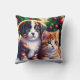 Dit schattige Sierkussen is ontworpen voor Kerstmis. Het ontwerp show een schattige puppy en kat onder de kerstboom in stijl. Prachtige decoratie voor uw huis, mooi cadeau voor uw familie, kinderen en vrienden. Ontworpen door AIbyMarion