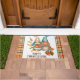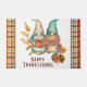Leuke Thanksgiving-thema voordeurmat beschikt over een paar kabouters met pompoen en taart met herfst gekleurde geruite achtergrond.