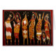 Zes vrouwen bewegen, zwaaien en dansen. Er is één kind en één vrouw heeft een baby op haar heup. De vrouwen en kinderen zijn gekleed in mooie, heldere kleding en hebben siervoorwerpen in hun haar en vele vormen van juwelen op hun lichaam. De cijfers zijn tegen een zwarte achtergrond met een diepe rode grens als onderdeel van de tapijten.