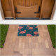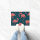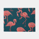 Vectorpatroon met handgetekende flamingos in levende koraalkleur op donkerblauwe achtergrond.