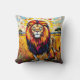 Leeuw thema gooi kussen. Een prachtige ai-illustratie van een leeuw in een prachtige gebrandschilderde en gebroken tegels motief stijl in aardse kleuren zoals bruin en blauw.