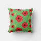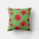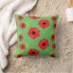 Een prachtig ontwerp met gedurfde rode papavers met zwarte centra tegen een frisse groene stip achtergrond. Het levendige contrast en de speelse opstelling creëer een vrolijke en in het oog springende esthetiek.