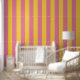 Levendig roze en geel verticaal gestreept patroon behang