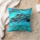 Een stijlvol, opvallend kussen of een scatterkussen, in turquoise zwart-wit, van een abstract, met de hand geschilderd ontwerp, met de suggestie van 'Waves', van Judy Adamson.