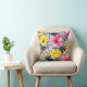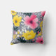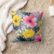 Levendige gele en roze bloemen op grijs kussen