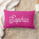 Dit vrouwelijke en kleurrijke kussen heeft een levendige, hete roze achtergrond, met jouw naam in trendy en retro wit schrift.