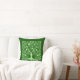 Kussen in een gestileerde tak en bloem, levensboom in lichtgroen op een donkere, pijngroene achtergrond