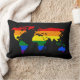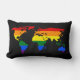 Lumbar Pillow met de kaart van de wereld in de kleur van de LGBT-pridevlag, een ontwerp op een zwarte achtergrond