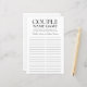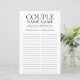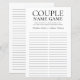 Deze mooie trouwe LGBTQ Couple Name Game bruiloft douchekaart is eenvoudig en charmerend - perfect voor elke douche die twee mannelijke identificatiepartners viert. Dit leuke en gemakkelijke spel is zeker om veel gelach naar elke douche te brengen. Geef gewoon een vel aan elke gast (vergeet de pennen niet) en laat het plezier beginnen! Je zult verbaasd zijn over hoeveel verschillende woorden mensen met de namen van het gelukkige stel komen spreken. Om dit spel uw te maken selecteert u deze sjabloon aanpassen en typt u de namen van de strijders.