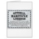 Licence Baritone Officielle. Il y a de nombreuses activités impliquant divers équipements, comme l'utilisation d'une automobile, d'un avion, etc., qui nécessitent une formation spécialisée et des licences. Faire de la musique est quelque chose qui nécessite généralement une formation : leçons, pratique et répétitions. Ne devrait-on pas exiger des futurs musiciens qu'ils reçoivent une licence pour exploiter l'équipement, c'est-à-dire leur instrument de musique?