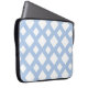 Een stijlvol, geometrisch patroon met een rooster van lichtblauw. Het babyblauwe kruisuitbroeden scheidt grote en kleine witte diamanten. Digitaal gemaakt afbeelding. Copyright ©2014 Claire E. Skinner, Alle rechten voorbehouden.