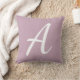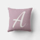 Eenvoudig schattig monogram kussen in licht paarse met een grote moderne scriptletter.