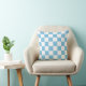 Een werpkussens ontworpen met een lichtblauw en wit ingecheckt patroon. Pas de lichtblauwe kleur, de patroongrootte onder andere opties aan.