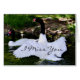 Een zwaan met zijn veren uit de lucht, die naar een andere zwaan op weg is. Producten, Kaart, Briefkaarten, Stickers voor alle gelegenheden.
