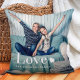 Deze schattige en stijlvolle kussen bevatten twee van je persoonlijke foto's, samen met het woord 'liefde' in elegante, witte, moderne typografie en een hart.