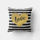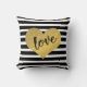 sofa kussen: chique gouden faux metallic hart ontwerp / grillige "liefde" typografie / stijlvolle zwart-witte strepen achtergrond