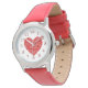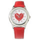 Leuke rode harten in harten zetten het gezicht van dit horloge af, met rode cijfers, en de keuze van meer rode en witte harten rond de buitenste bezel, en een snazzy rode horlogeband! Prachtig Valentijns cadeau!