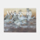 Een stel Sandhill Cranes die klaarstaan om flapperende vleugels te verlaten als ze zich voorbereiden op hun vertrek naar de karamel kuste zonsondergang in Bosque Del Apache New Mexico.Foto door Bryan Keil. De tekst kan worden aangepast aan uw behoeften.