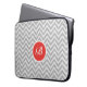Light Grey Chevron Pattern Linen Texture Monogram Laptop Sleeve
