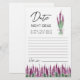 Lila Lavender Date nidht ideeën Paper Sheet. Vrijgezellenfeest activiteit.