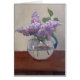 Deze notitiekaart is gebaseerd op het originele kunstwerk van Maryann Lucas. Het bevat een bouquet van paarse lilacs in een ronde glazen vaas.