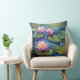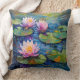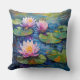 Dit kussen is versierd met roze en witte Lelies in een vijver.