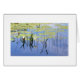 Reflecties van lilies, kussens en meergras in het meer Caroline, Cape Neddick, Maine.