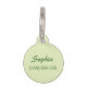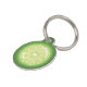 Destei's illustratie van een groene kleur gesneden limoen citrusvrucht. Aan de andere kant zijn er twee personaliseerbare tekstgebieden waar de ene ideaal is voor de naam van het huisdier, terwijl de andere kan worden gebruikt voor het telefoonnummer van de eigenaar.