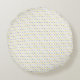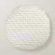 Decoratieve ronde kussen met geel en grijs patroon.