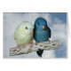 Een paar gelinkte paraketten tegen een blauwe hemel