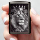 Prachtige, gepersonaliseerde Zippo-aansteker met een afbeelding van een mooie zwarte en witte leeuw met een zilveren koninklijke kroon, tegen een zwarte achtergrond. Pas het aan door uw eigen naam, Initialen of tekst toe te voegen. De stijl, kleur en grootte van de doopvont kunnen worden veranderd.