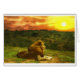 Leeuw die een zonsondergang uitzicht bekijkt