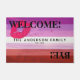Deze welkome slaapzaal is voorzien van een prachtige Lipstick Lesbische vlag met een strandfotografie achtergrond. Aan de ene kant staat "Welkom" en aan de andere kant staat "Dag!". Het wordt ook gepersonaliseerd met uw familienaam of een kort bericht in het centrum. Dit is een geweldig cadeau voor een vriend of familielid die lesbisch is.