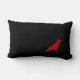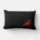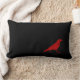 Kleine rode kraai die op een smal rechthoekig zwart kussen loopt. Dit schattige kussen zou veel interesse en pizazz toevoegen aan elke kamer.