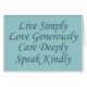 Leef gewoon, liefde genereus, zorg diep, spreek keihard. Woorden om elke dag te leven. Ontworpen voor een blauwe achtergrond.