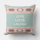 Dit leuke Azteekse stijl kussen is perfect voor uw woonkamer, slaapkamer of zelfs de studentenkamer van uw dochter! De achtergrond is bleek blauw en er zijn twee brede strepen van een Azteeks motief met "Live Love Laugh" in het midden.