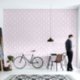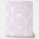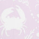 White lobsters, crabs, and seashells create a coastal design on light pink. A soft preppy coastal look for beach house style.