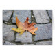 Een enkel droogblad, van de Londense vliegtuigboom tegen een met de hand doorgesneden ruw-stenen straat. Fotografie van Minerva Bloom.