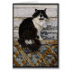 Un chat noir et blanc égaré masculin énorme de smoking se reposant sur une barrière de trellis dans la perspective du mur extérieur d'une maison avec la peinture d'épluchage. Ma propre photographie originale de beaux-arts disponible sur une toute carte de voeux d'occasion ou la carte de note. Un de 5 chats égarés qui ont fait la porte à côté de maison à notre vieil immeuble, maison.