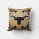 Maak je thuis af met dit 'Een van de soorten' Sierkussen. Het kenmerkt een Zwarte Longhorn Steer Head Silhouette omringd door een Decoratieve Grens op een Verbergen Huid! Oorspronkelijk ontwerp van artiest Kerry Miller!
