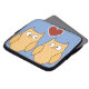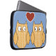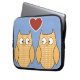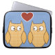 ontwerp van twee uilen die samen staan met een rood liefdeshart tussen hen op een hemelblauwe achtergrond. Kute en eigenzinnige cartoon ontwerpen geïnspireerd door liefde en vriendschap.